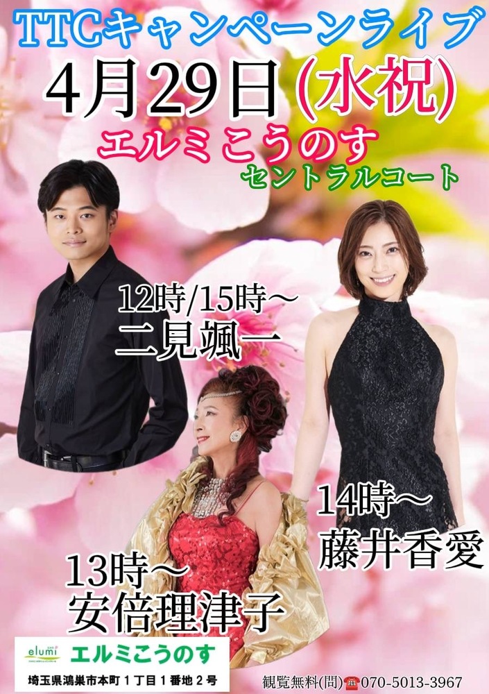 【キャンペーン】エルミこうのす SCHEDULE 2026/04/29(水) 14:00 - エルミこうのす セントラルコート 地図を表示 埼玉県鴻巣市本町1丁目1番地 2号 エルミこうのすホームページ URLをコピーする 報告する